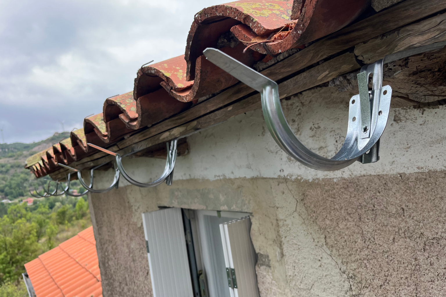 Mise en place de crochets résistants pour accueillir une nouvelle gouttière durable.