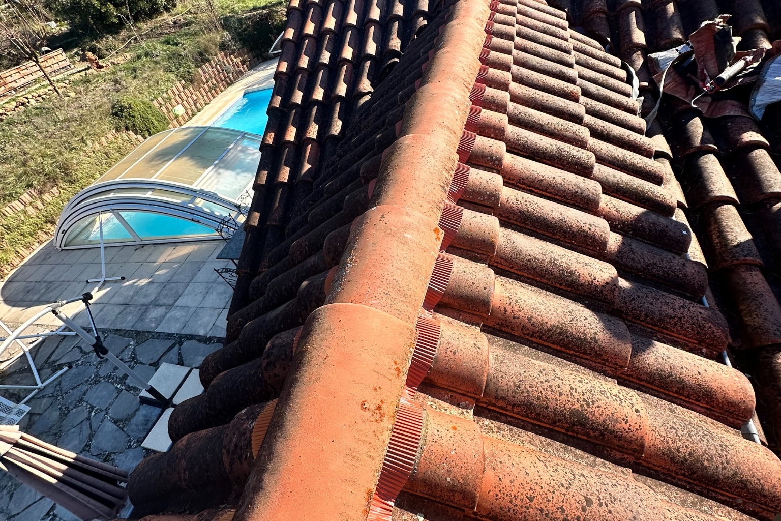 Remise en état du faîtage pour garantir l’étanchéité et la solidité de votre toiture.